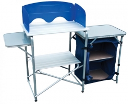 Складная походная кухня Tramp TRF-021. Походная кухня имеет съемный складной ветрозащитный экран, удобный шкафчик с полками для хранения посуды и продуктов. Ножки могут регулироваться по высоте, что придает дополнительную устойчивость. Кухня складывается в кейс, удобный для транспортировки и имеет дополнительный тканевый чехол, который защищает от царапин при перевозке и хранении.